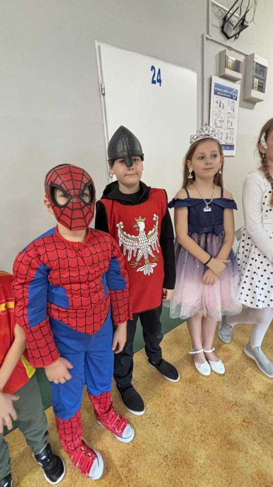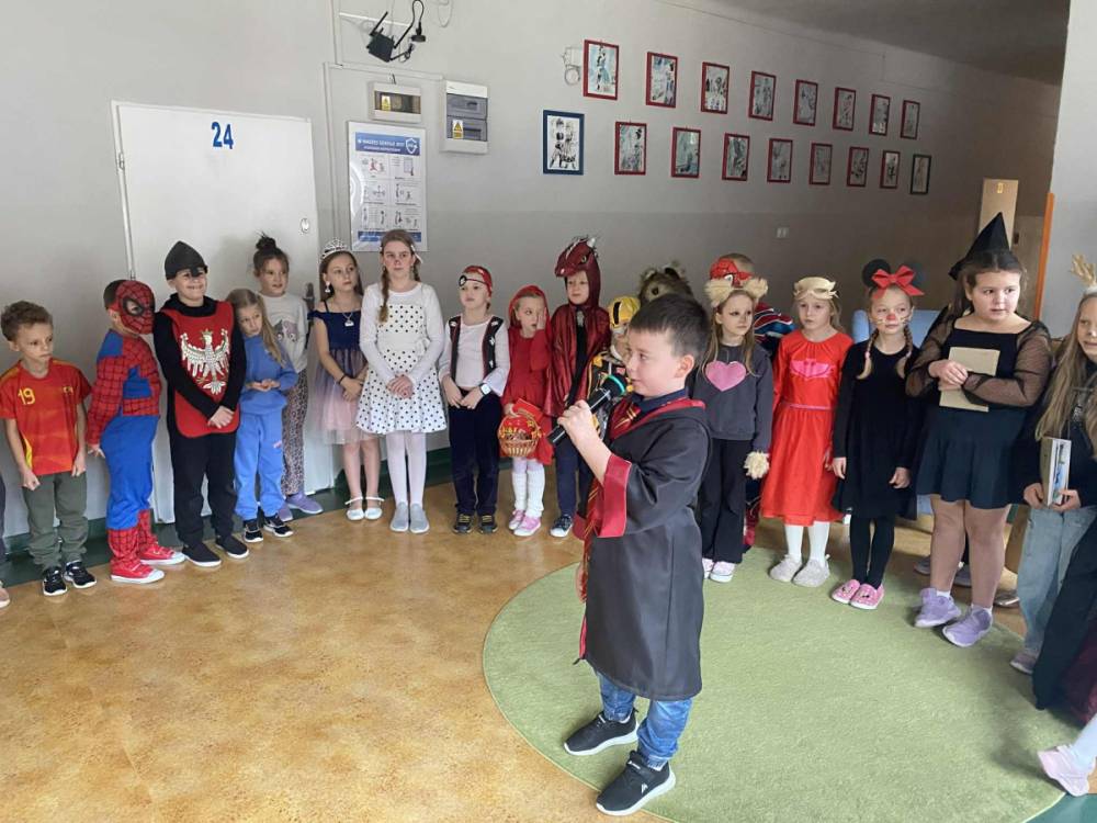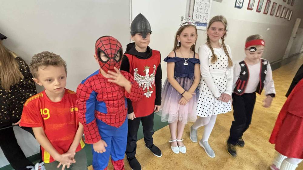 14 listopada nasza szkoła zamieniła się w barwną, bajkową krainę! Uczniowie I-III  wzięli udział w obchodach Międzynarodowego Dnia Postaci z Bajek, przeobrażając się w swoich ulubionych bohaterów. Radosne spotkanie integracyjne na korytarzu było wstępem do parady, która przeszła przez korytarz w rytm piosenki "Witajcie w naszej bajce". Uczniowie dzielili się pasją do czytania, prezentując fragmenty ulubionych bajek, a następnie sprawdzali swoją wiedzę i sprawność w czytelniczych quizach i kalamburach. To był wspaniały dzień pełen zabawy, wyobraźni i integracji, który zakończyliśmy wspólnym, pamiątkowym zdjęciem.