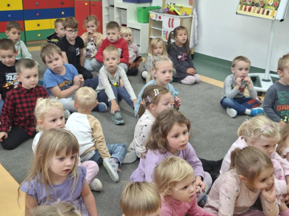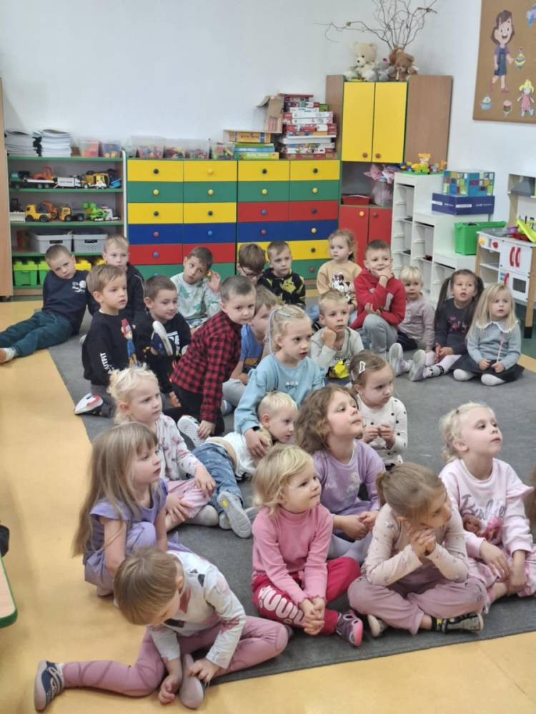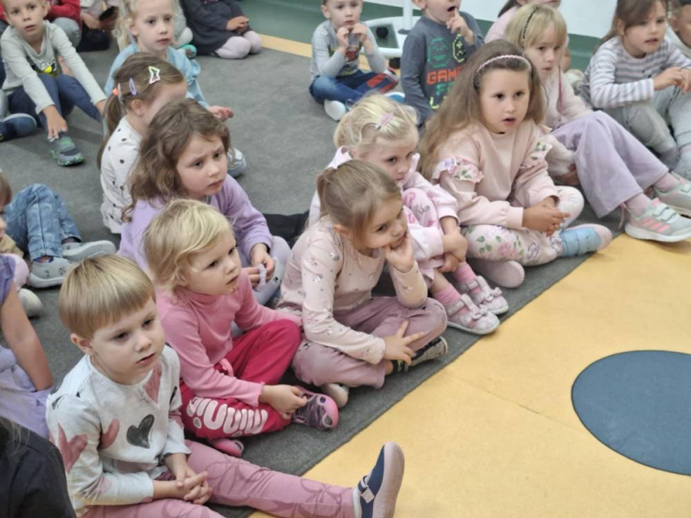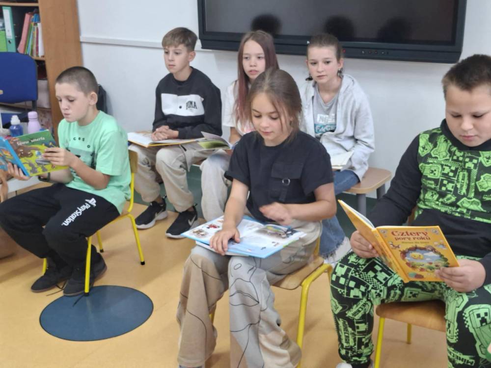 Starsze dzieci z wielkim zaangażowaniem czytały przedszkolakom wiersze znanych autorów literatury dziecięcej. Mali słuchacze z uwagą śledzili rytmiczne strofy, żywo reagując na zabawne rymy i barwne opisy. Po wspólnym czytaniu przyszedł czas na zagadki! Dzieci rozwiązywały ilustrowane łamigłówki związane z bohaterami książek. Na zakończenie spotkania przedszkolaki chwyciły za kredki i farby, by stworzyć portrety swoich ulubionych bohaterów literackich.