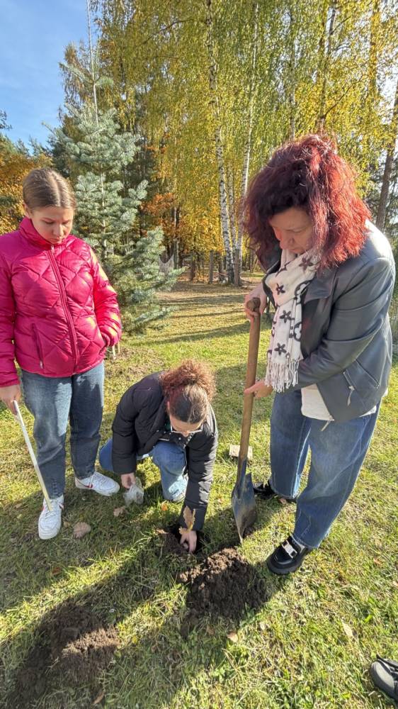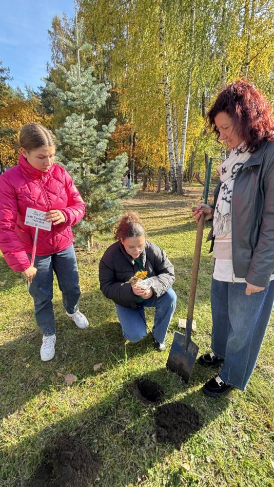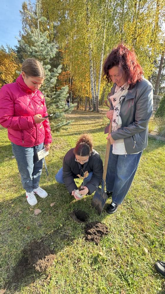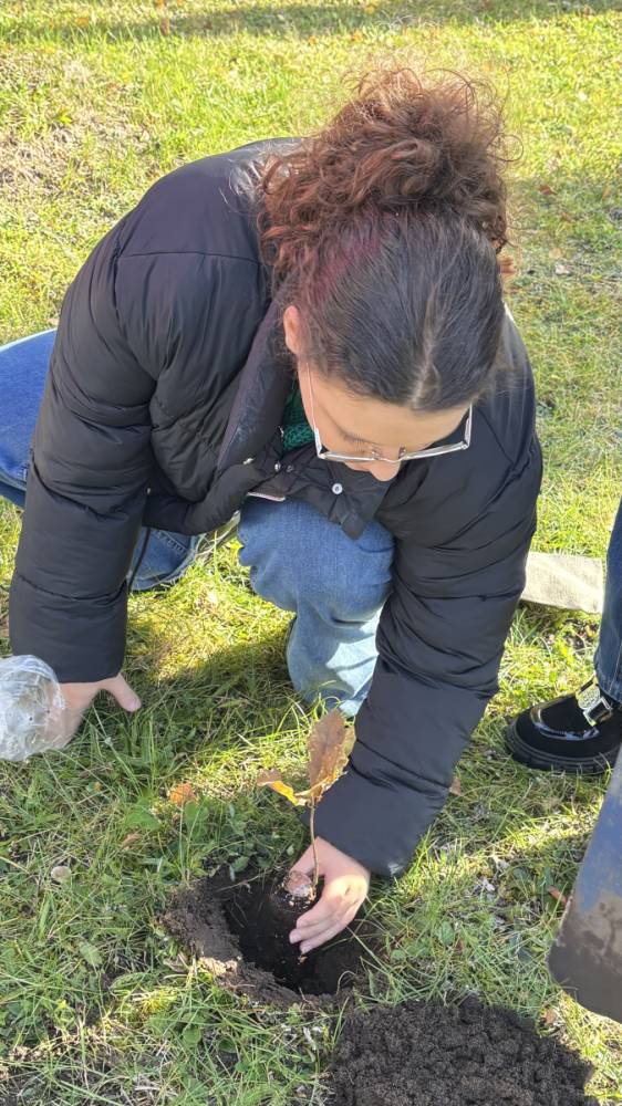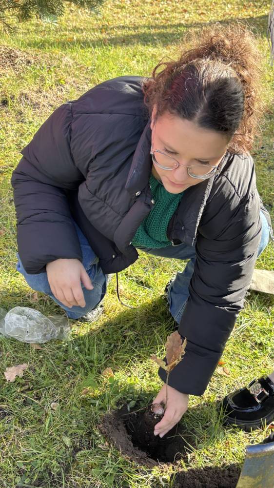 Jako pierwsza symboliczne wbicie łopaty pod sadzenie Dębu Stulecia wykonała pani p.o. dyrektor Marzena Tomaszewska. Następnie dołączyła do niej pani Renata Wrześniewska - nauczycielka przedmiotów przyrodniczych oraz przedstawicielki samorządu uczniowskiego - przewodnicząca SU Zofia Zbytek i Maria Obara, dając początek historycznej chwili, która na długo pozostanie w naszej szkolnej pamięci.