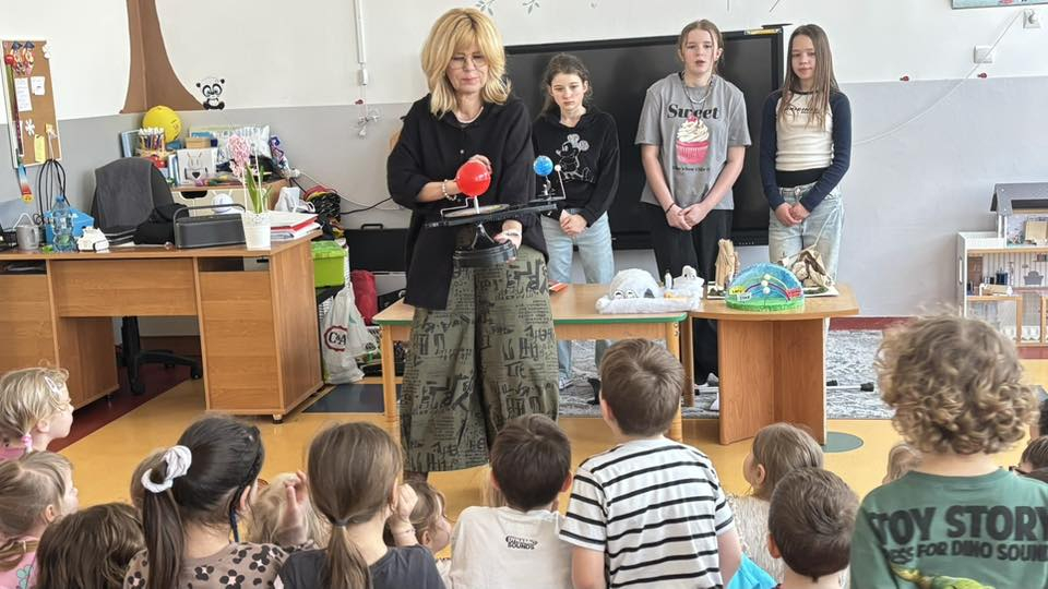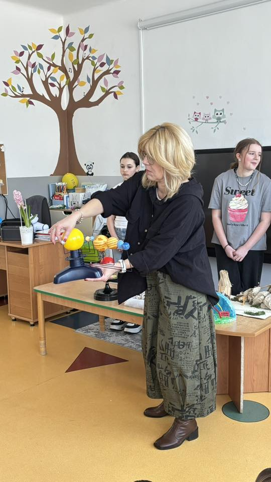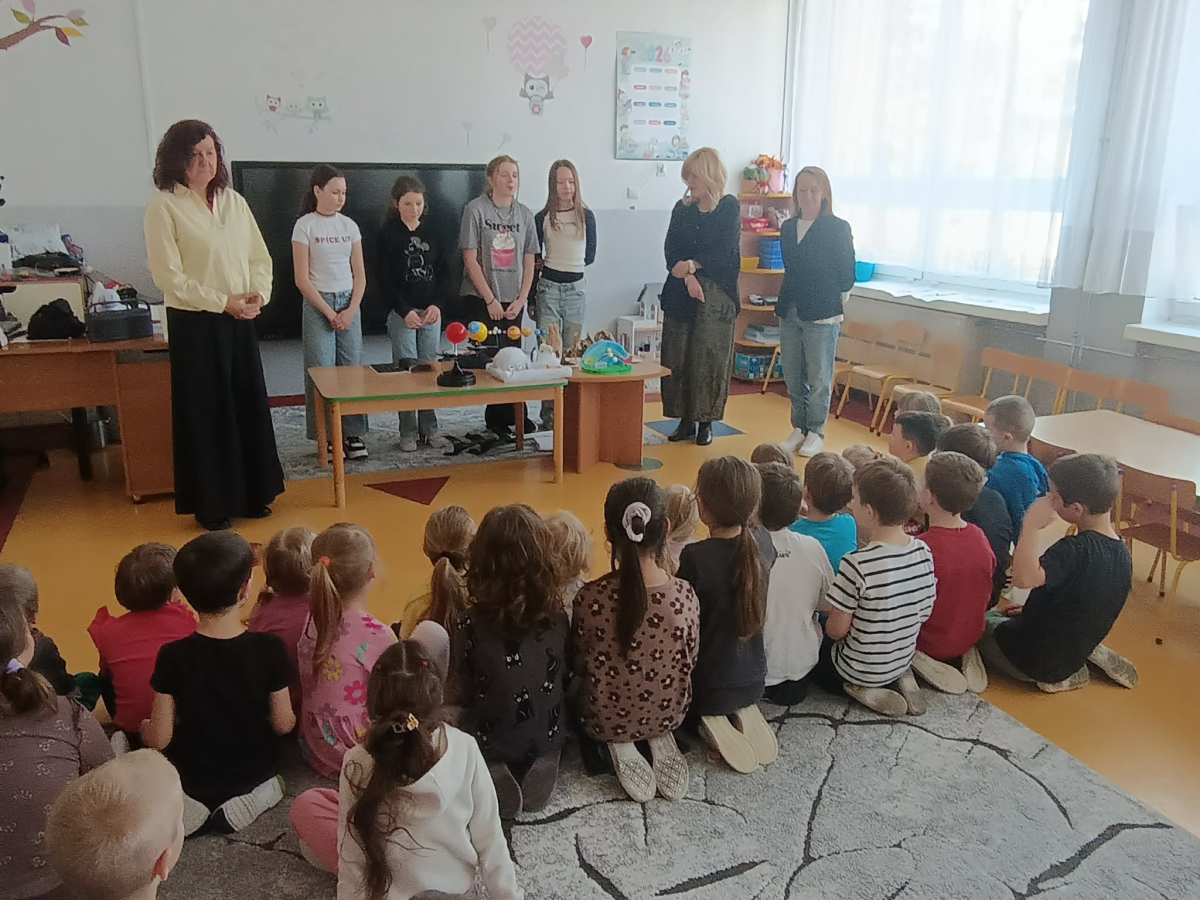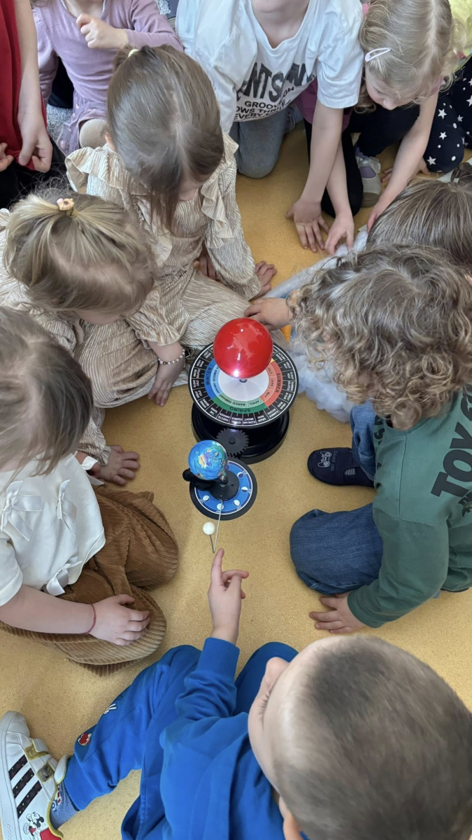 Podczas spotkania młode odkrywczynie w przystępny i ciekawy sposób wyjaśniły najmłodszym, jak powstaje dzień i noc. Korzystając z modeli i prostych doświadczeń pokazały ruch obrotowy Ziemi oraz to, dlaczego w różnych miejscach na świecie raz jest jasno, a raz ciemno. Kolejnym zagadnieniem były pory roku – dzieci mogły zobaczyć, jak zmienia się oświetlenie Ziemi w zależności od jej położenia względem Słońca.