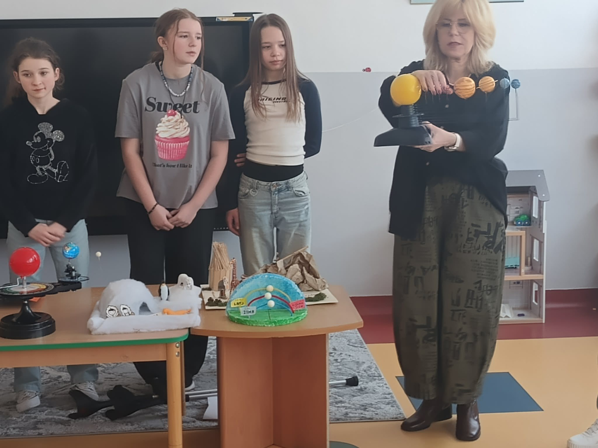 Dużym zainteresowaniem cieszyły się przygotowane przez uczennice makiety przedstawiające różne strefy klimatyczne. Dzieci mogły zobaczyć, jak wyglądają miejsca o ciepłym klimacie oraz obszary o zimnym klimacie, a także porównać roślinność i warunki panujące w tych środowiskach.