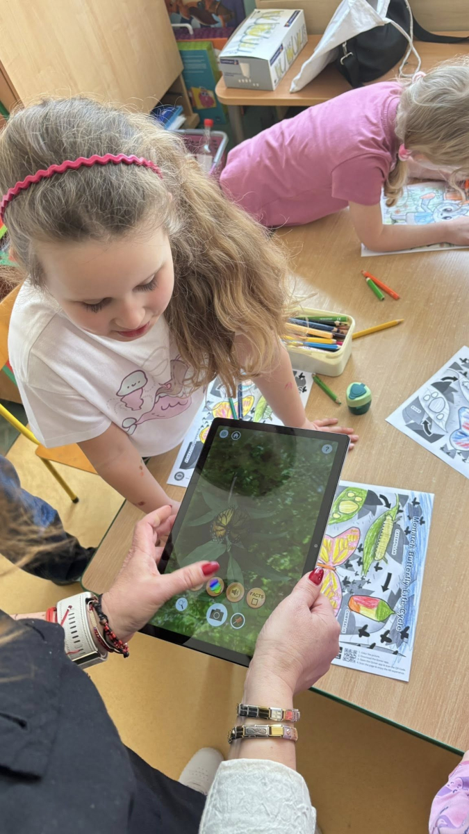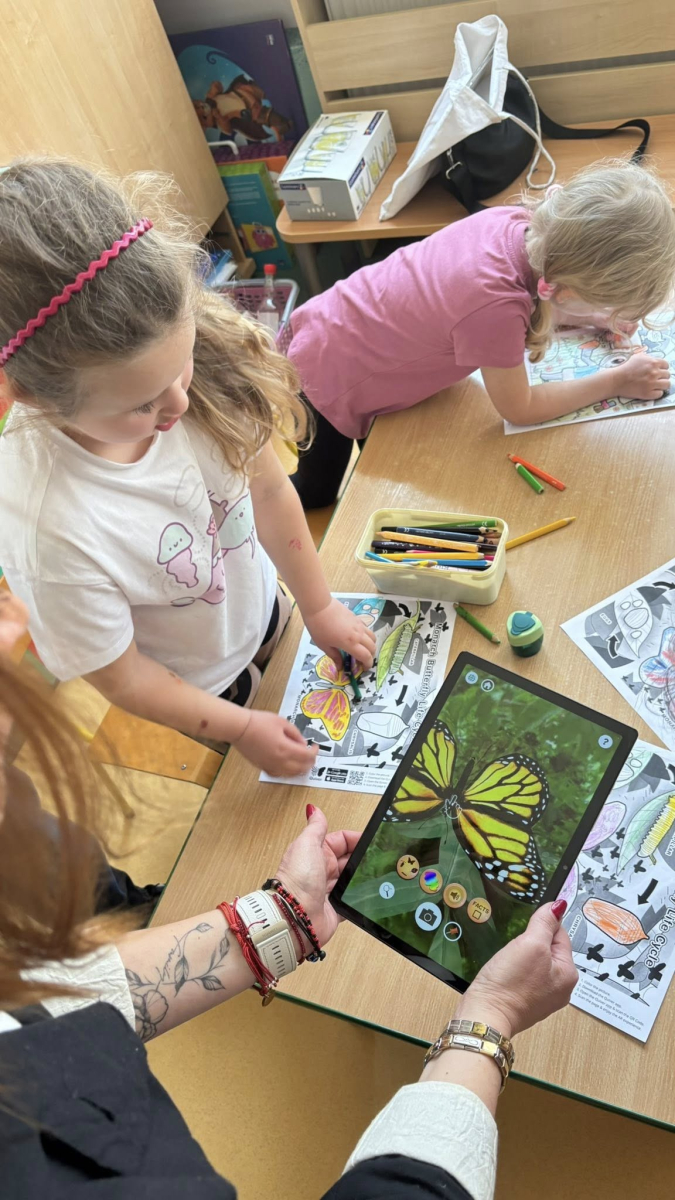 Na zakończenie warsztatów dzieci poznały ciekawostkę z pogranicza nauki i technologii – ożywianie obrazów za pomocą prostych hologramów. Pokolorowane motyle unosiły się w powietrzu, co zrobiło na przedszkolakach ogromne wrażenie.