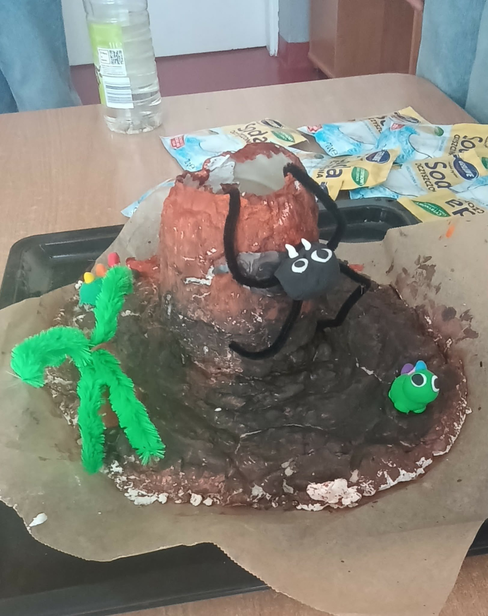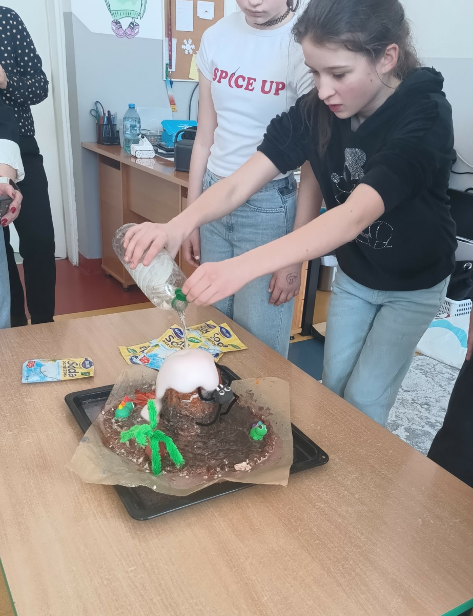 Jednym z najbardziej emocjonujących momentów zajęć był pokaz wybuchu wulkanu. Dzięki przygotowanemu modelowi uczennice zaprezentowały, jak może wyglądać erupcja wulkanu. Efektowna „lawowa” reakcja chemiczna wzbudziła ogromne zainteresowanie i zachwyt wśród najmłodszych uczestników.