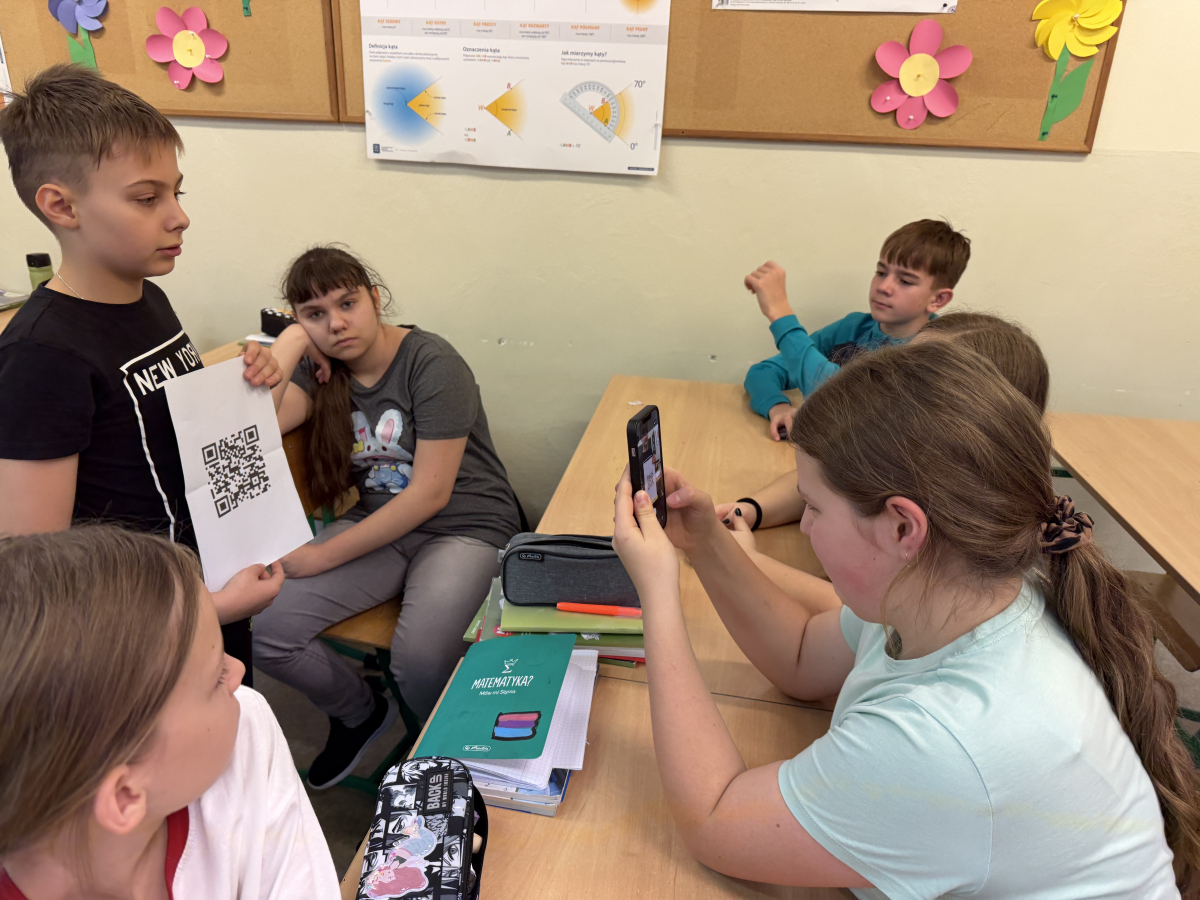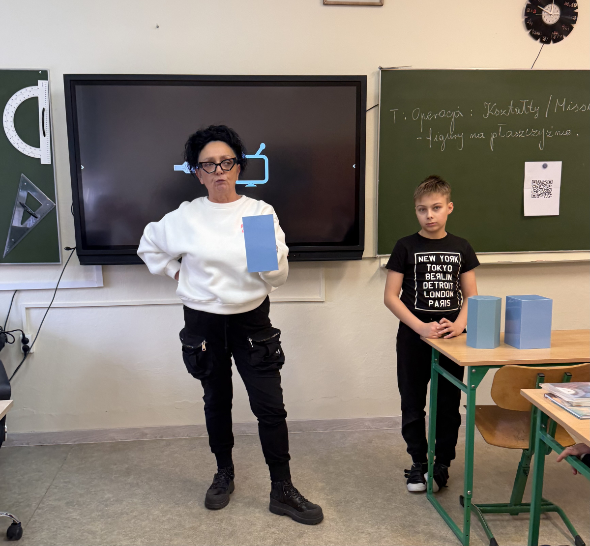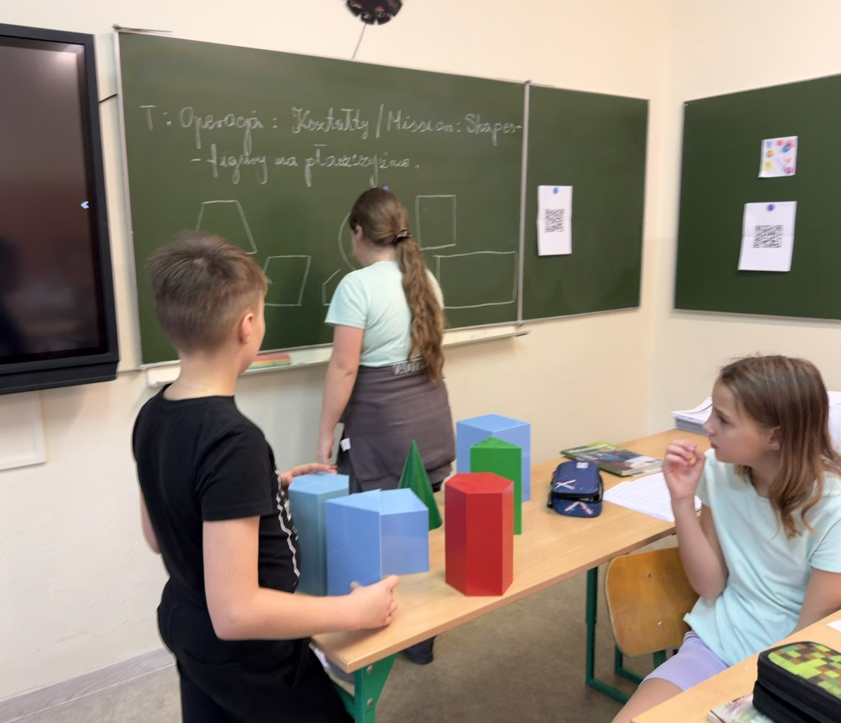 Ale potem zrobiło się naprawdę „mission style”. Przeszliśmy na tryb dwujęzyczny. Uczniowie poznali nazwy figur po angielsku, skanując kody QR niczym agenci na tajnej misji. Pod kodami ukryły się słówka, gry, szybkie quizy i wyzwania grupowe. A dzięki sprytnemu wykorzystaniu IT i technologii mobilnych, nauka zamieniła się w dynamiczną „operację”.