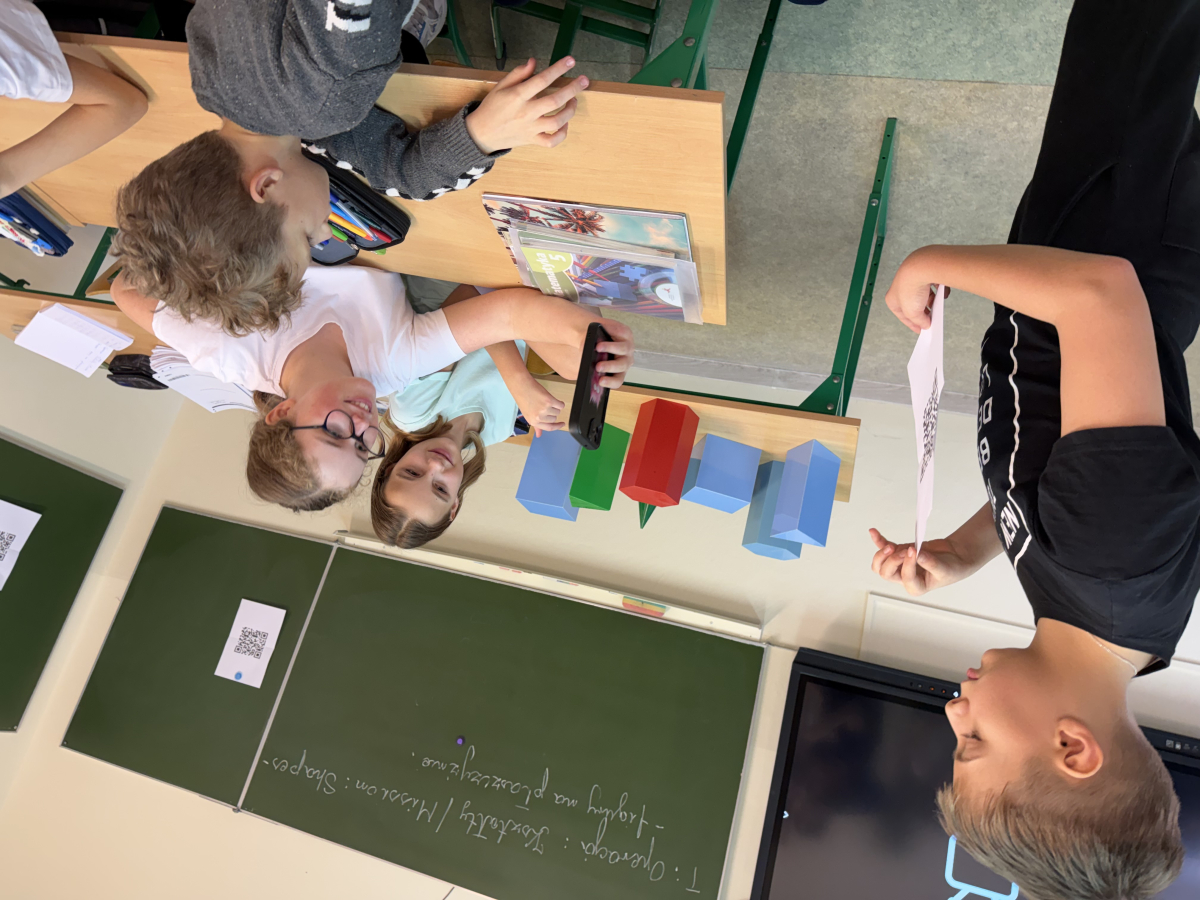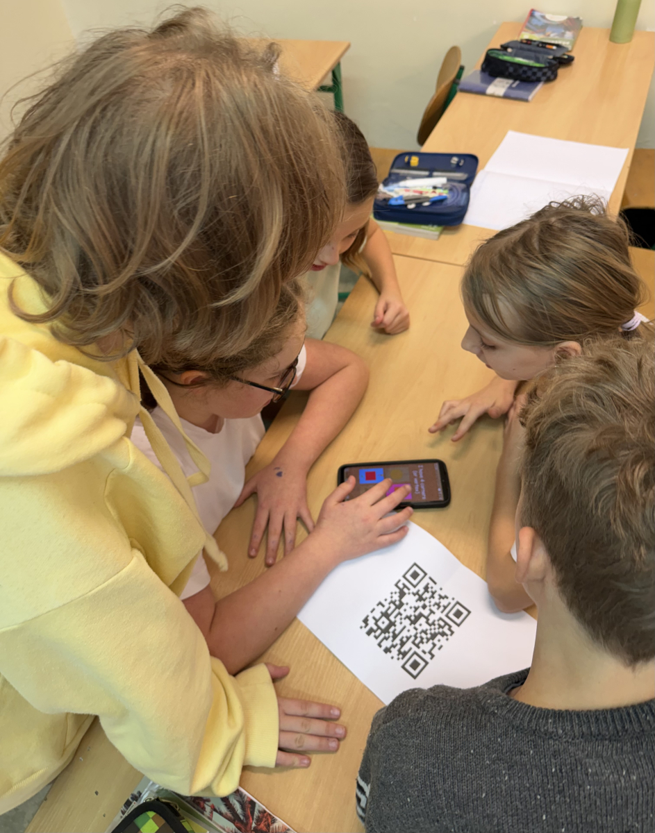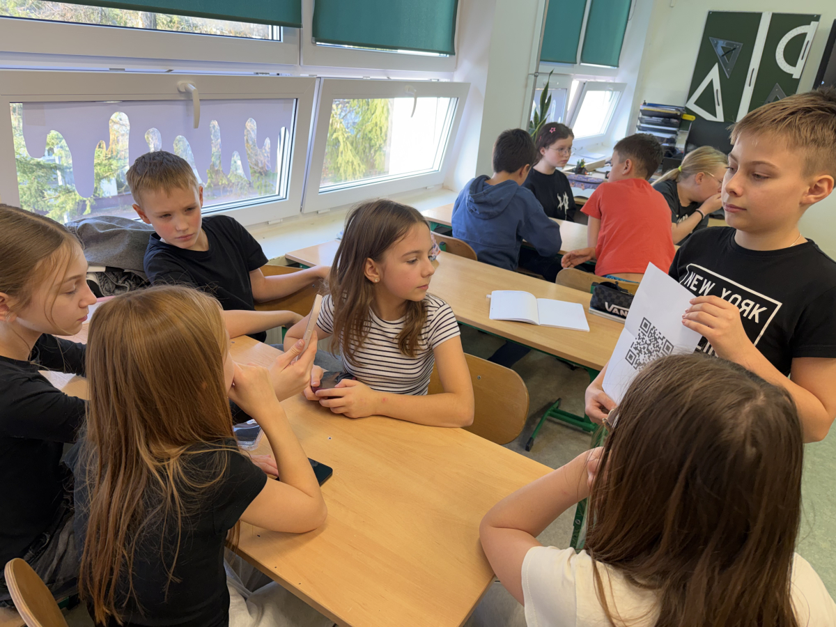 Ale potem zrobiło się naprawdę „mission style”. Przeszliśmy na tryb dwujęzyczny. Uczniowie poznali nazwy figur po angielsku, skanując kody QR niczym agenci na tajnej misji. Pod kodami ukryły się słówka, gry, szybkie quizy i wyzwania grupowe. A dzięki sprytnemu wykorzystaniu IT i technologii mobilnych, nauka zamieniła się w dynamiczną „operację”.