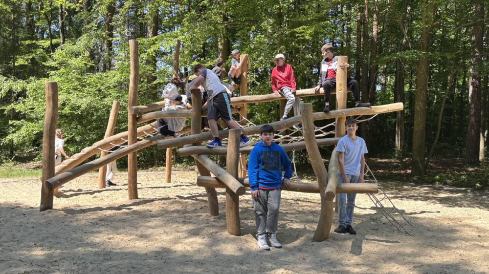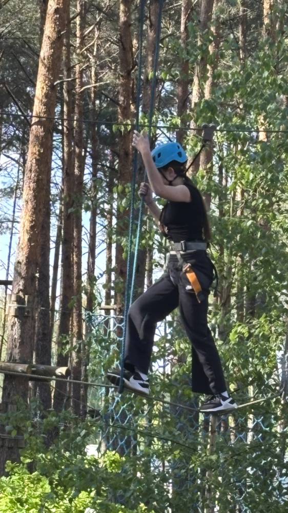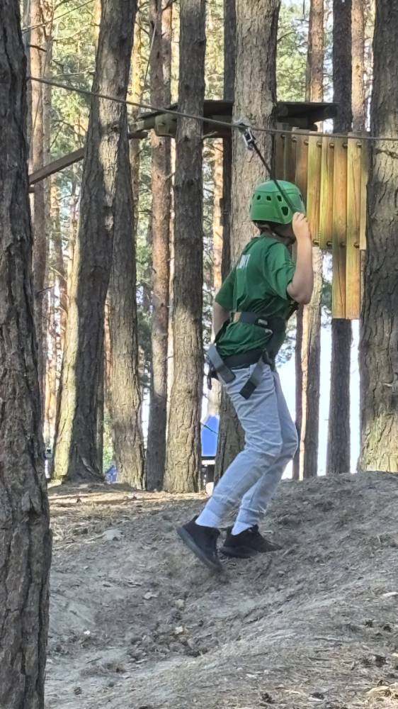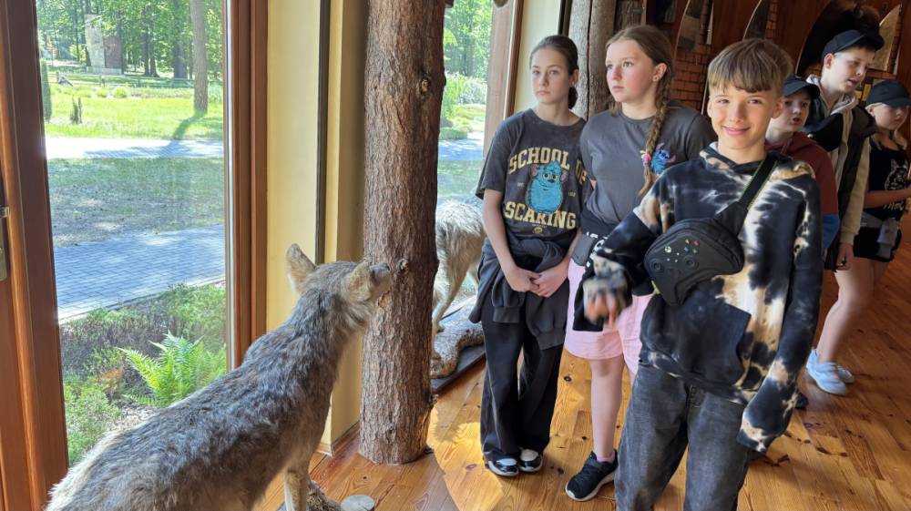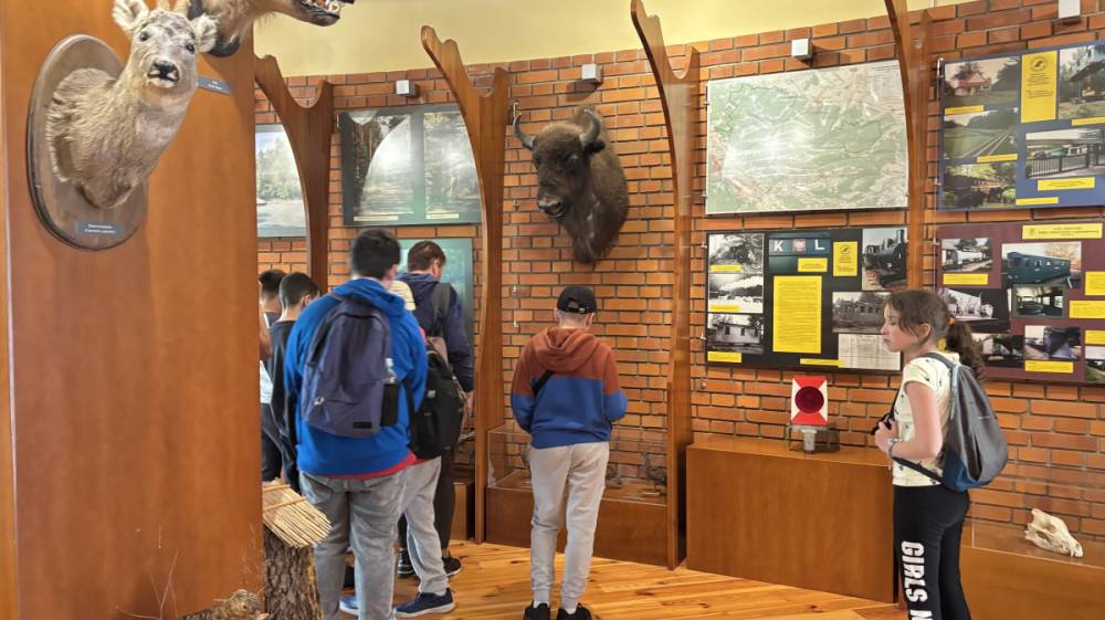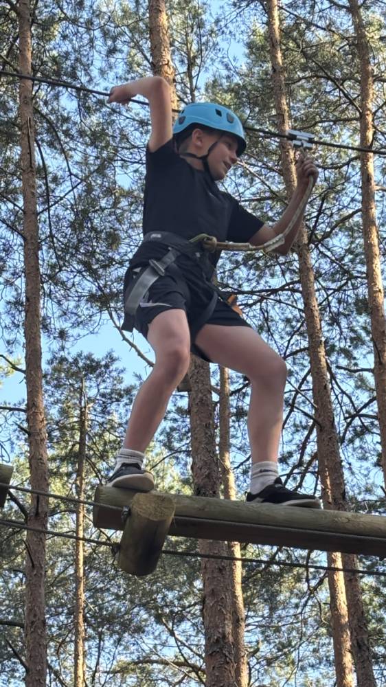 W dniach 26 – 28.05.2025 r. uczniowie klas 5 – 6 pod opieką p. Marzeny Tomaszewskiej i p. Agnieszki Pakuły wybrali się na trzydniową wycieczkę do urokliwego Janowa Lubelskiego. Swoją przygodę rozpoczęli od warsztatów w Ośrodku Edukacji Ekologicznej, gdzie poznali walory przyrodnicze Lasów Janowa Lubelskiego, dowiedzieli się, jak wygląda praca leśników, jakie rośliny i zwierzęta zamieszkują te tereny, a także jak dbać o środowisko. To była świetna okazja, by nauczyć się czegoś nowego i zrozumieć, jak ważne jest chronienie przyrody. Spacerując ścieżką dydaktyczną obok Ośrodka zobaczyli również tabor kolejki leśnej i piękne łąki kwietne, które zachwycają swym zapachem i wyglądem. Kolejnym punktem wycieczki było multimedialne centrum ZOOM Natury. Ekspozycja główna wprowadziła uczestników wycieczki w świat przyrody oraz gatunków znajdujących się pod ochroną, ukazując naturalne dziedzictwo przyrody za pomocą nowoczesnych środków. Multimedia przybliżyły najważniejsze zagadnienia z zakresu botaniki i zoologii. Pod specjalnie zaprojektowanymi soczewkami i kamerami uczniowie mogli zajrzeć w niewidziane gołym okiem tajniki natury. Podziwiali zbudowaną z 60 000 klocków LEGO model elektrowni wodnej, składający się z tamy, górskiego miasteczka, zalewu z plażą, portu oraz latarni morskiej. Po zajęciach przyrodniczych przyszedł czas na sprawdzenie swoich umiejętności fizycznych. Pod czujnym okiem instruktorów uczniowie bezpiecznie pokonywali przeszkody na wysokościach w parku linowym sprawdzali swoją odwagę, zręczność i koordynację ruchową. Jednocześnie uczyli się, jak ważne jest zachowanie ostrożności i współpraca z innymi. Park linowy to nie tylko świetna zabawa, ale także doskonała okazja do rozwoju pewności siebie i pokonywania własnych lęków. Wszyscy spisali się na medal. Po długim i pełnym wyzwań dniu wszyscy zasnęli w swoich łóżeczkach.