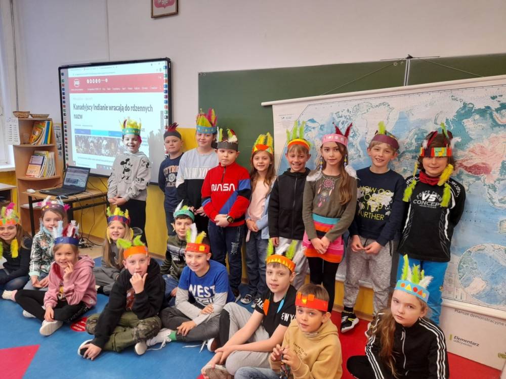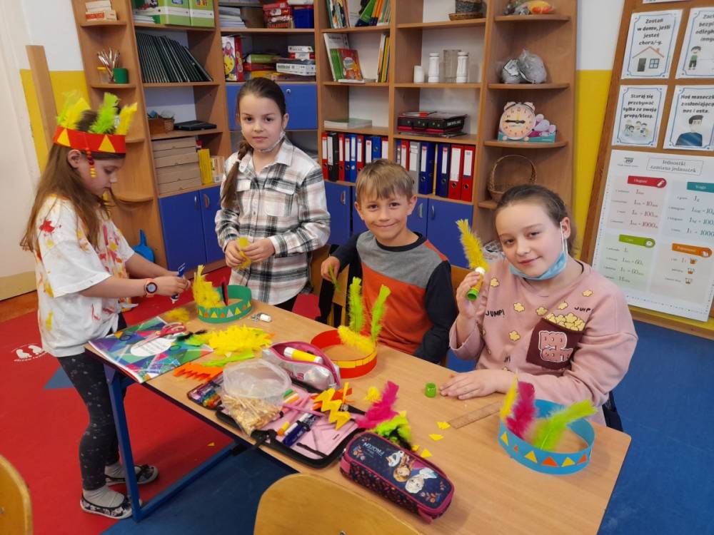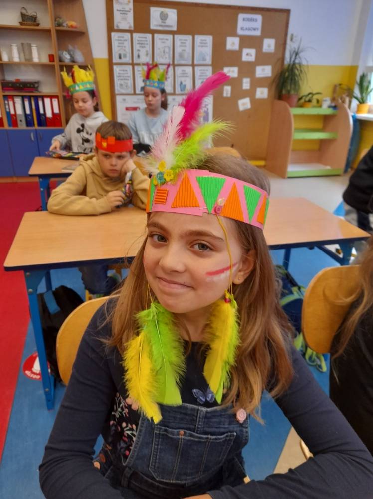 Miniony tydzień był dla uczniów klasy 2 niezwykle atrakcyjny i ekscytujący. Znowu wybraliśmy się w daleką podróż. Tym razem naszym kierunkiem były obie Ameryki. Uczniowie poznali wielkich odkrywców Krzysztofa Kolumba i Amerigo Vespucciego. Dowiedzieli się jakie zwierzęta zamieszkują Amazonię. Opisali groźnego jaguara i wzbogacili swoje słownictwo o takie słowa jak tipi, koloniści, kamuflaż. Najwięcej radości przyniosło dzieciom poznanie kultury Indian i własnoręczne wykonanie pióropuszy. Każdy wymyślił dla siebie indiańskie imię.