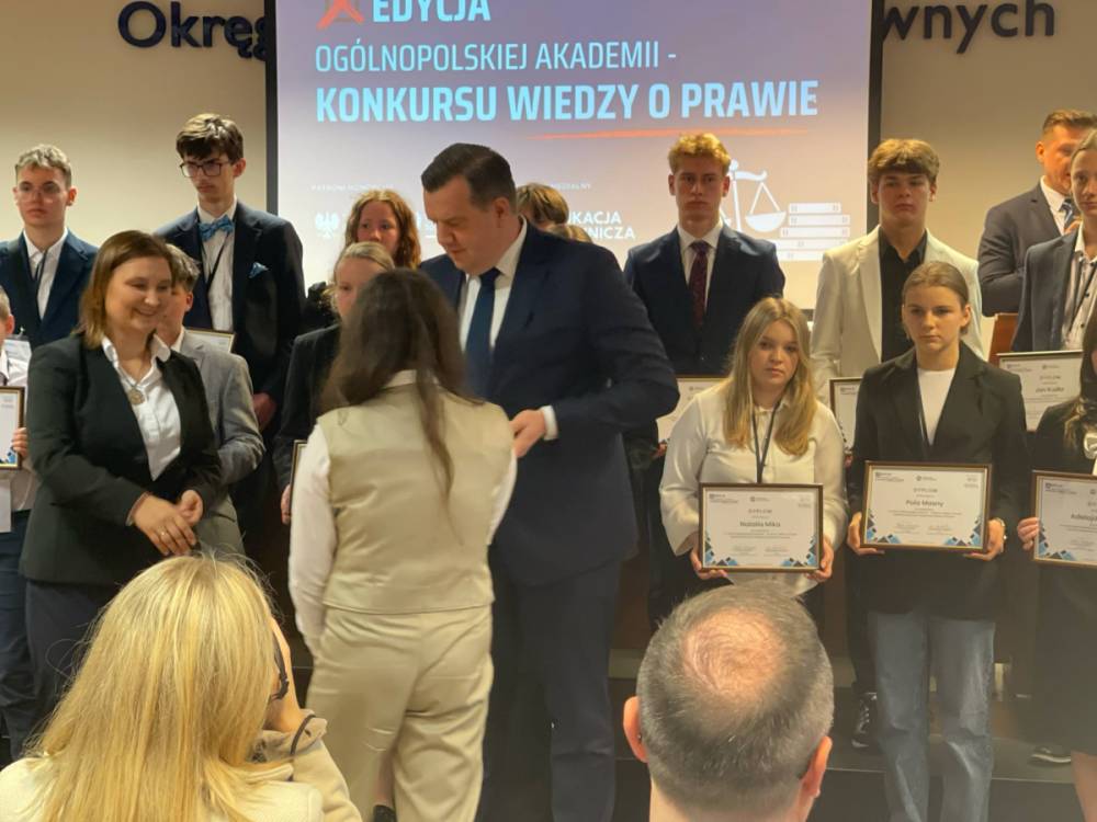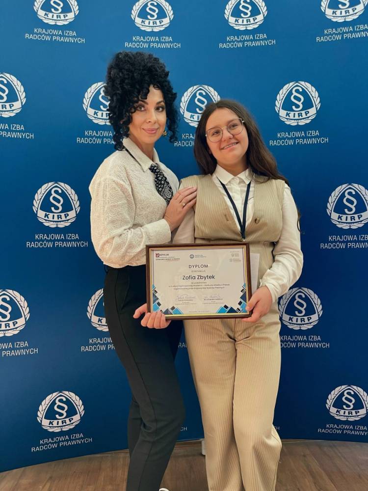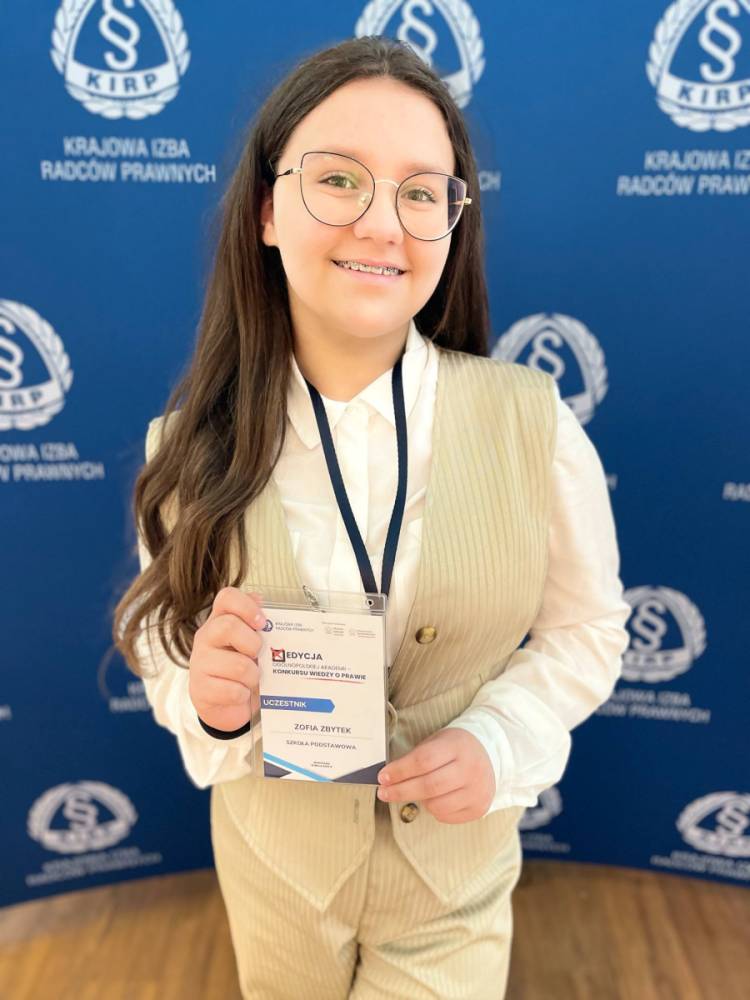 19 maja 2025 r. w Warszawie odbył się finał ogólnopolski prestiżowej Akademii- Konkursu Wiedzy o Prawie, organizowanego przez Krajową Izbę Radców Prawnych. Z dumą informujemy, że Zofia Zbytek, ucz. kl.7a Szkoły Podstawowej nr 2 im. Orła Białego w Skarżysku- Kamiennej, z powodzeniem reprezentowała swoją szkołę, miasto oraz cały okręg, należąc do grona 36 najlepszych uczestników z całej Polski. Zosia – laureatka I miejsca etapu okręgowego – zaprezentowała w finale imponującą wiedzę z zakresu prawa pracy, cywilnego i karnego. Ostatni etap konkursu miał formę ustnej prezentacji przed komisją złożoną z przedstawicieli środowiska prawniczego. Uczennica wykazała się nie tylko rozległą wiedzą, ale również logicznym myśleniem, umiejętnością argumentacji oraz dojrzałością wypowiedzi. Zosia zaprezentowała się znakomicie, zdobywając wysokie noty i plasując się bardzo blisko ścisłej czołówki konkursu –wystąpienie zostało wysoko ocenione przez komisję i wywołało duże uznanie środowiska prawniczego. Jej udział w finale to nie tylko osobisty sukces, ale także potwierdzenie, że młodzież z „Dwójki” może z powodzeniem konkurować z najlepszymi w kraju w tak wymagającej, ambitnej i prestiżowej dziedzinie jak prawo. Podczas konkursu Zosia wzięła również udział w warsztatach tematycznych dla chętnych uczestników Finału , m.in. poświęconych porównaniu systemów prawnych w kulturze popularnej oraz tworzeniu pism procesowych. Również w tej części wydarzenia zaprezentowała się znakomicie, imponując umiejętnością analizy skomplikowanych kazusów i precyzyjnego formułowania argumentów. Wydarzenie odbywało się pod honorowym patronatem Minister Edukacji Narodowej Barbary Nowackiej oraz Ministra Sprawiedliwości Adama Bodnara. Gościem honorowym finału była Podsekretarz stanu w Ministerstwie Edukacji Narodowej – Paulina Piechna-Więckiewicz. W komisjach konkursowych zasiadali m.in. koordynatorzy ds. edukacji prawnej z Okręgowych Izb Radców Prawnych, co zapewniło wydarzeniu wysoki poziom merytoryczny. Warto podkreślić, że uczniowie Szkoły Podstawowej nr 2 im. Orła Białego od wielu lat osiągają sukcesy w tym prestiżowym konkursie, imponując wiedzą prawniczą i regularnie awansując do jego wielkiego finału. W gronie dotychczasowych finalistów znajdowali się laureaci czołowych miejsc na szczeblu ogólnopolskim, co świadczy o wysokim poziomie przygotowania młodzieży oraz konsekwentnym rozwijaniu edukacji obywatelskiej i prawnej w szkole. Dzięki tym sukcesom placówka zyskała dużą rozpoznawalność w środowisku konkursowym jako szkoła wspierająca rozwój świadomości prawnej wśród uczniów i promująca młode talenty w tej dziedzinie. Za licznymi osiągnięciami uczniów stoi wieloletnia, pełna zaangażowania praca pani Ewy Kopeć, która z pasją rozwija w młodzieży zainteresowanie prawem i skutecznie wspiera ich w drodze do finału. Serdecznie gratulujemy Zosi– to sukces, który napawa dumą i inspiruje!