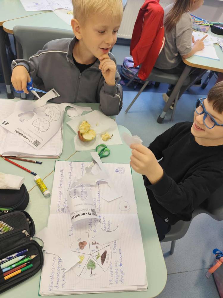 Dziś w klasie 2 było bardzo smacznie i przyrodniczo! Nasi uczniowie poznawali niezwykły cykl życia jabłka – od pestki aż po soczysty owoc.