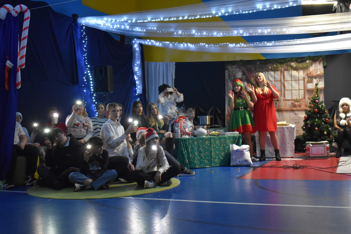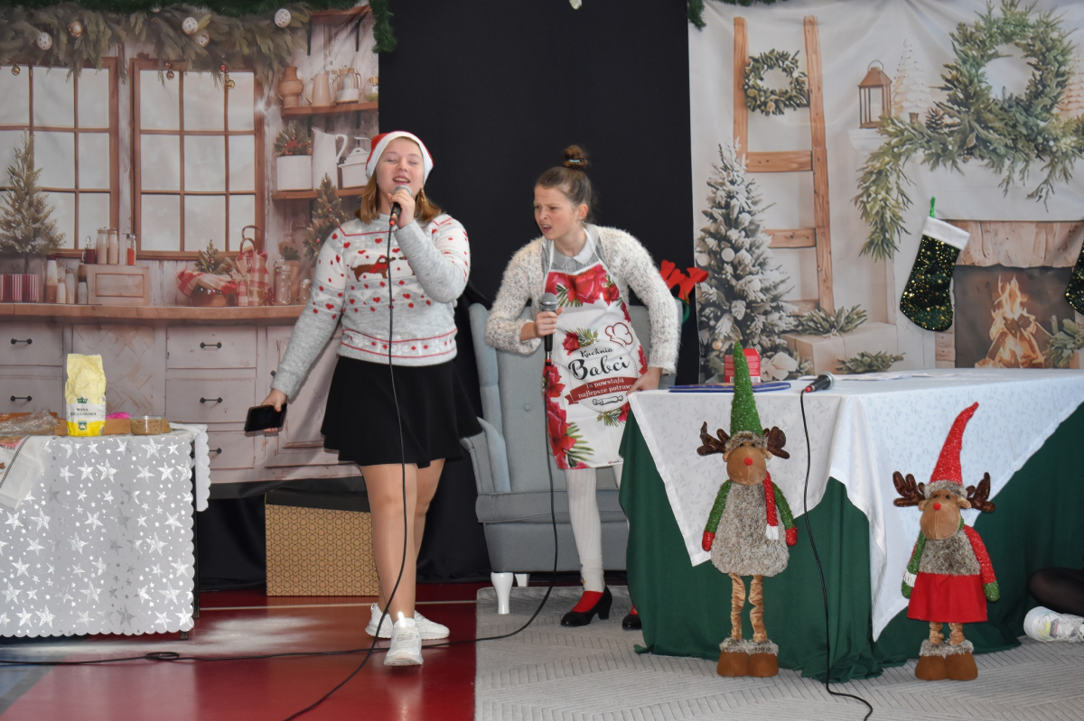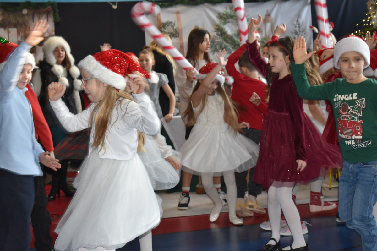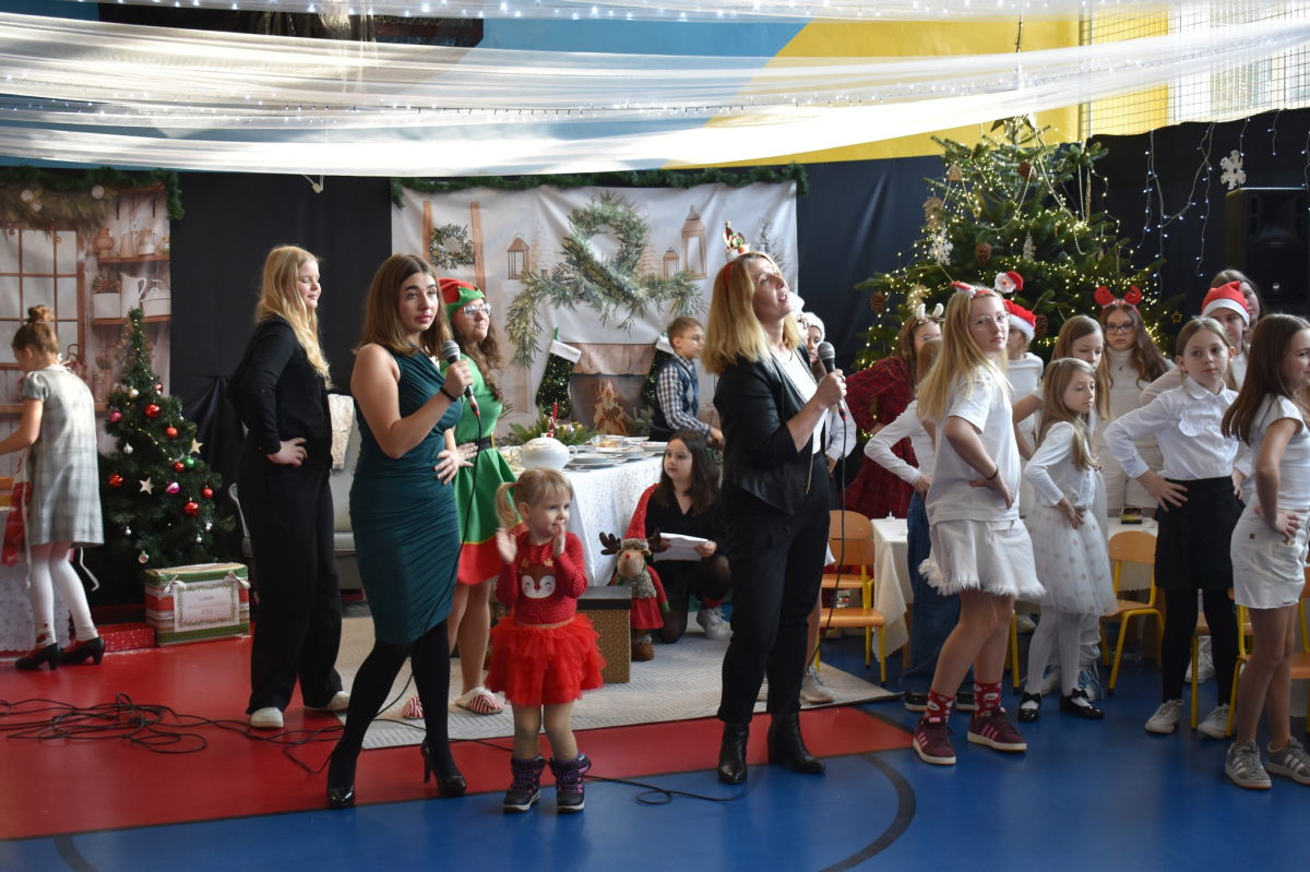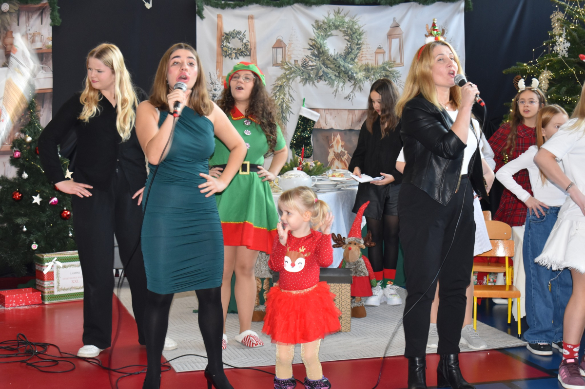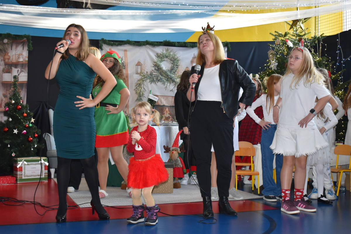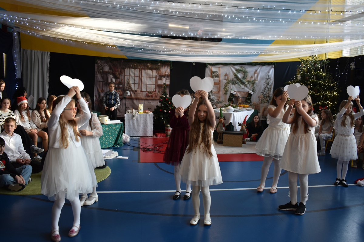 Spektakl miał formę prawdziwego musicalu, łączącego grę aktorską, taniec oraz aż 11 piosenek, które prowadziły widzów przez kolejne sceny opowieści. Dynamiczne układy taneczne przeplatały się z dialogami pełnymi humoru i refleksji, a muzyka nadawała rytm historii opowiadającej o współczesnych Świętach – pełnych pośpiechu, ekranów i codziennego chaosu, ale też bliskości, nadziei i potrzeby bycia razem. Na scenie zaprezentowali się uczniowie klas I–VIII, zachwycając naturalnością, energią i ogromnym zaangażowaniem.