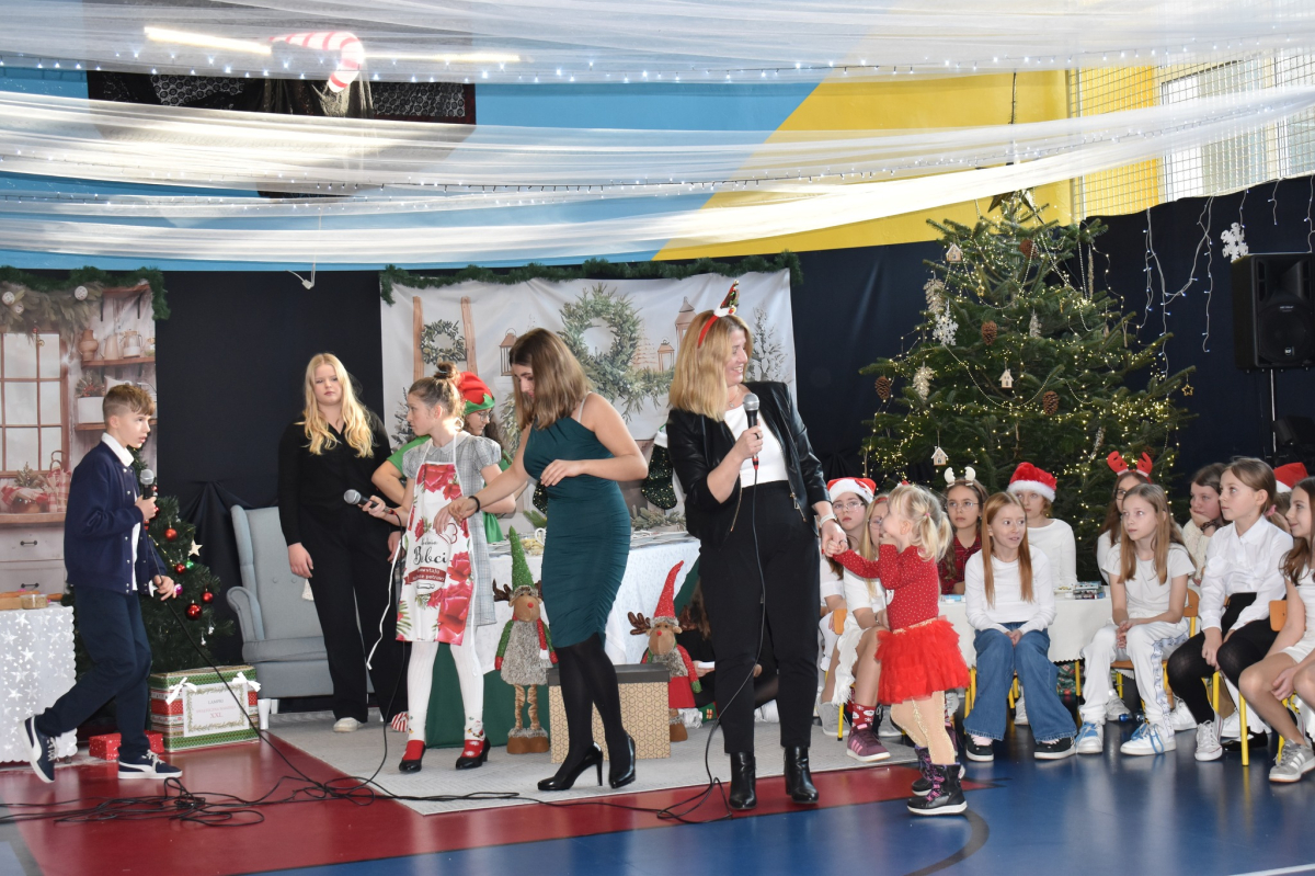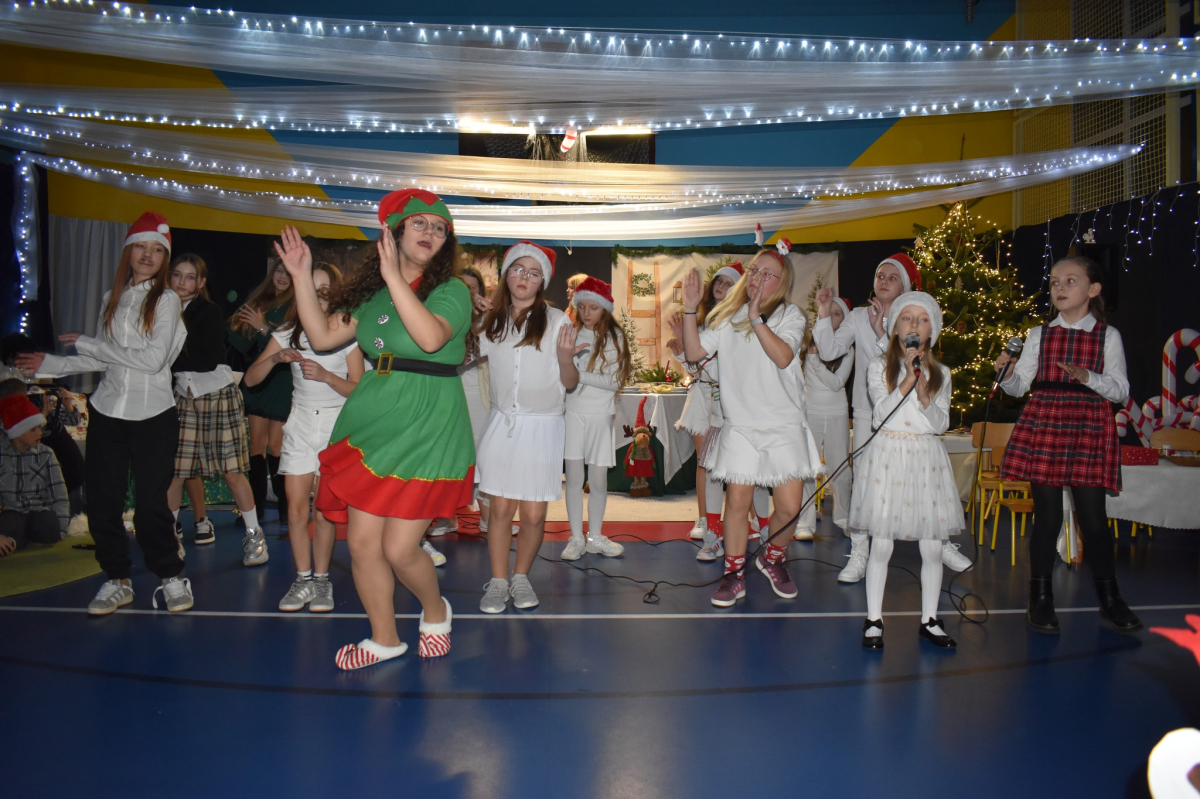 W piątkowy poranek 19 grudnia 2025 roku musical świąteczny pt. „Święta u Elfów” miał swoją premierę i został zaprezentowany uczniom szkoły oraz przedszkolakom. Po porannym spektaklu głos zabrała Radna Rady Miasta Renata Pela, która – nie mogąc uczestniczyć w popołudniowej uroczystości – pogratulowała młodym artystom udanego występu, złożyła wszystkim świąteczne życzenia oraz wręczyła wykonawcom upominek jako wyraz uznania i podziękowania za piękne artystyczne przeżycie.