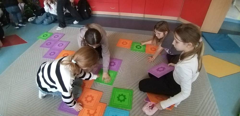 Pomagały nam edukacyjne filmiki „Sieciaki”, rozmowy i wspólne zabawy edukacyjne W świetlicy połączyliśmy naukę z działaniem – dzieci kodowały na dywanie z wykorzystaniem interaktywnej myszki oraz robota Photon . Zajęcia były także elementem wspierania zdrowia psychicznego – dbaliśmy o równowagę między światem online i offline.. Bo Internet to świetne narzędzie – jeśli korzystamy z niego mądrze, bezpiecznie i z troską o siebie.